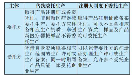 2.2 注冊(cè)人制度下委托生產(chǎn) 的特 點(diǎn) 注冊(cè)人制度將委托生產(chǎn)主體范 圍擴(kuò)大,委托方不再局限于生產(chǎn)企業(yè),受 托方可以結(jié)合委托方 需求及其 資源獲得相應(yīng)的生產(chǎn)許可,與傳統(tǒng)委托生 產(chǎn)的對(duì)比見(jiàn)表 1,這樣可 以整合委托雙方 的資源, 促進(jìn)行業(yè)精細(xì)分工, 使專業(yè)人干專業(yè)事是 醫(yī)療器械行業(yè)發(fā)展一大進(jìn)步。 表 1 醫(yī)療 器械 注冊(cè) 人 制 度 下 的 委托 生產(chǎn) 與傳 統(tǒng)委 托 生產(chǎn) 的對(duì) 比表